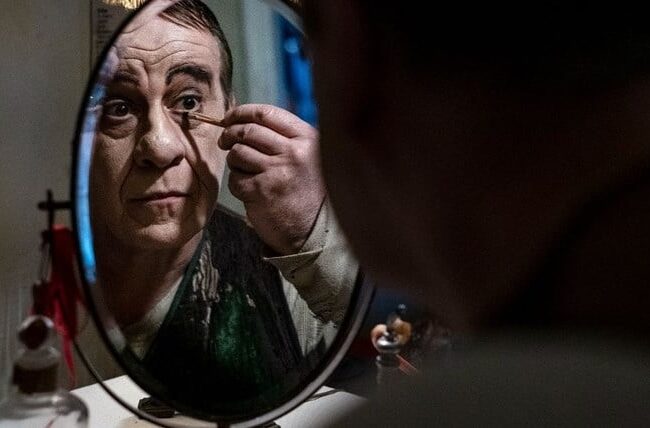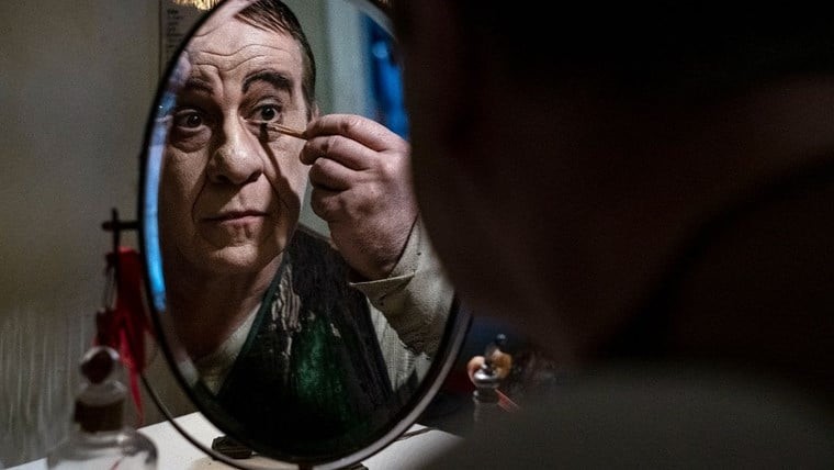 “Qui rido io” racconta la figura di un divoratore, un predatore di donne, famiglia e palcoscenico, devoto al culto della risata e degli applausi, per lui fattore cruciale, il respiro che alimentava il suo successo e la sua felicità.