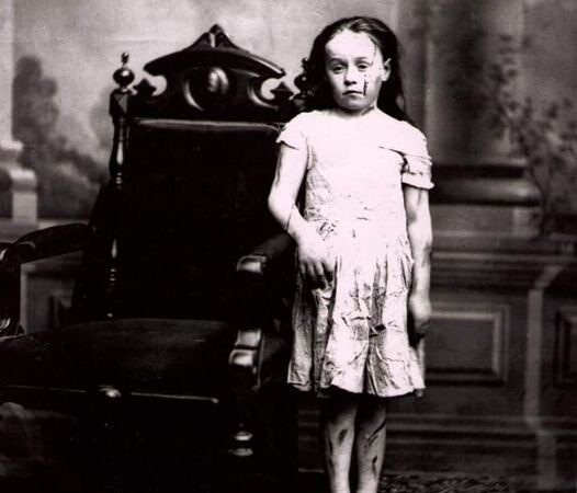 La foto che introduce questo articolo è stata scattata nel 1874 negli USA, dove non c’era nessuna legge che proteggeva i bambini abusati, o in qualche modo oppressi: è evidente la condizione fisica di questa bambina, ferita (si notino la profonda ferita sul lato sinistro del viso e le ferite sulle gambe), sporca, sofferente, depressa; la espressione di tristezza del volto è chiara.