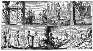 In un’illustrazione del ‘600 la rappresentazione di varie torture fatte agli schiavi italiani catturati dai saraceni: impalati, squartati da 2 navi, bruciati vivi, crocefissi, bruciati con candele, murati vivi, fatti a pezzi, trascinati da cavalli.