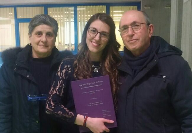 La dottoressa Silvia Ruocco di Minori, dopo aver conseguito la laurea in “Agrobiotecnologie” presso l’Università degli Studi di Napoli Federico II con votazione 110 e lode e menzione di merito, ha terminato lo scorso 22 febbraio il Dottorato di ricerca in “Scienze e Biotecnologie agrarie” presso l’Università degli Studi di Udine, in convenzione con la Fondazione Edmund Mach di San Michele dell’Adige (TN) ricevendo l’attestazione di “Doctor Europaeus”. La tesi di dottorato della dott.ssa Ruocco, dal titolo ”Chemical characteristics of wine made by disease tolerant varieties”, è stata svolta sotto la supervisione della dott.ssa Urska Vrhovsek – co-supervisione prof.ssa Doris Rauhut.