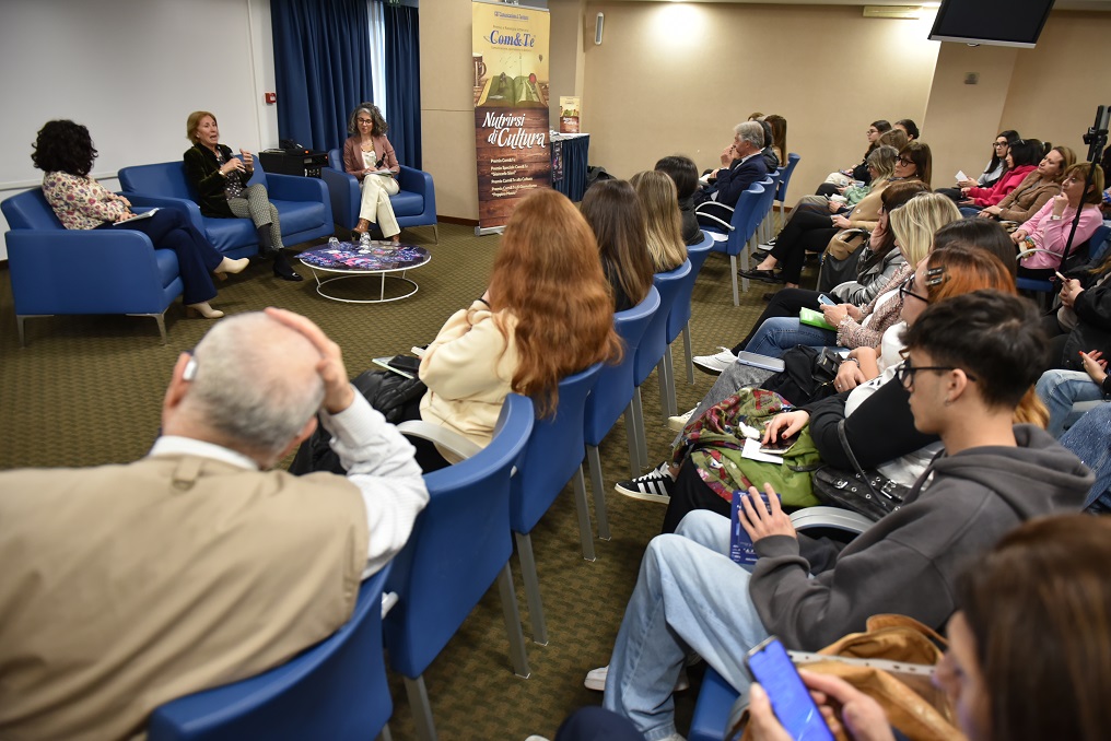 A stimolare l’autrice sono state l’avv. Angela Senatore e la prof.ssa Francesca Faiella, entrambe giornaliste della redazione di Ulisse online e componenti della segreteria organizzativa del Premio Com&Te.
