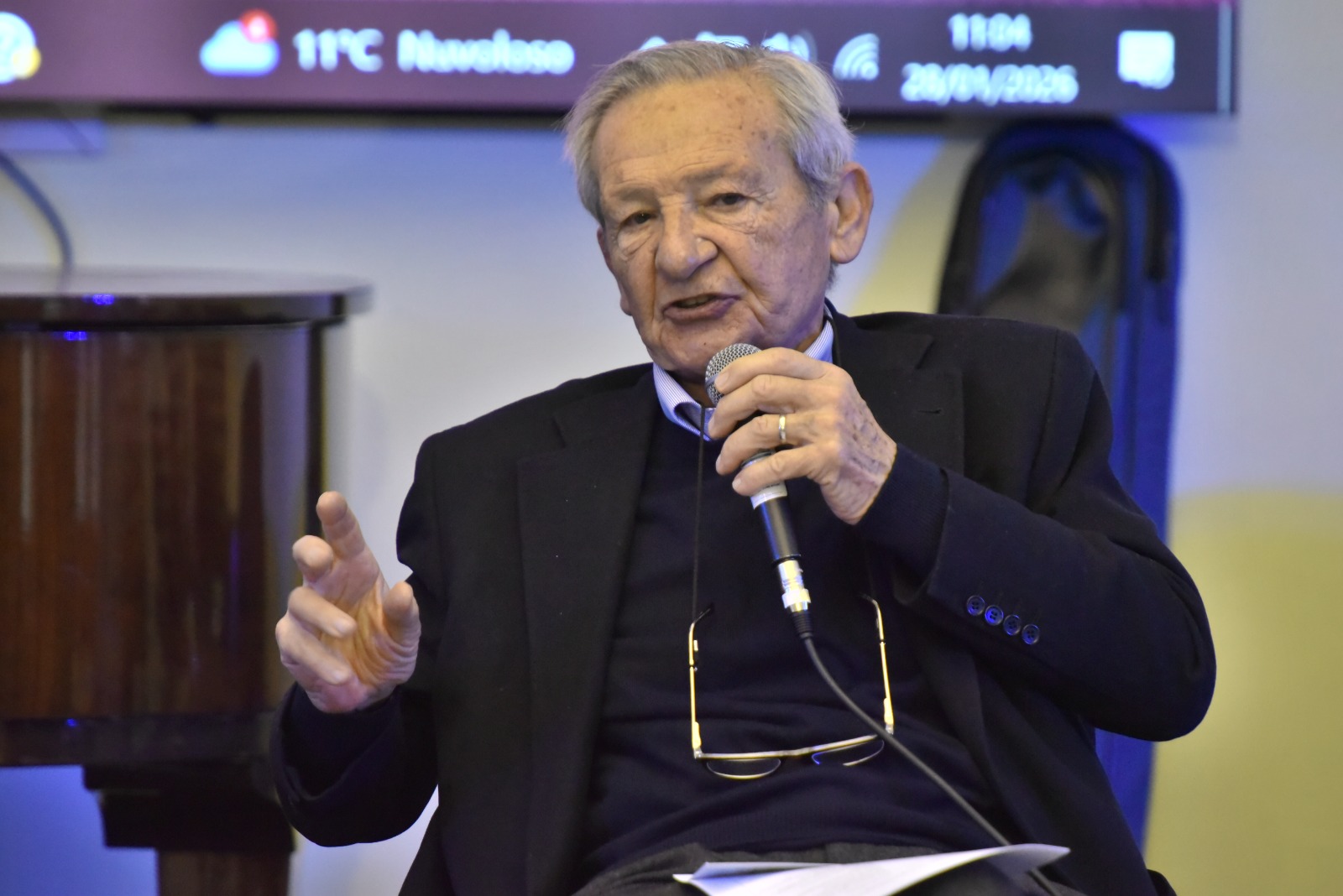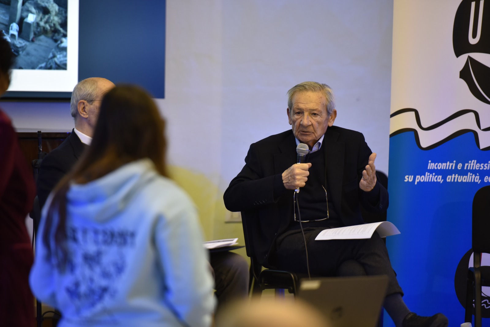 Per il prof. De Simone è stata poi l’occasione per fare un cenno al film “Sotto le nuvole” del regista Gianfranco Rosi presentato lo scorso anno alla 82ª Mostra del Cinema di Venezia e vincitore del Premio Speciale della Giuria. Si tratta di un documentario, in bianco e nero, girato per tre anni nell’area vesuviana che esplora la vita alle pendici del Vesuvio e include riprese con scene significative alla Villa Augustea di Somma Vesuviana, focalizzandosi sugli scavi archeologici e la memoria del territorio.