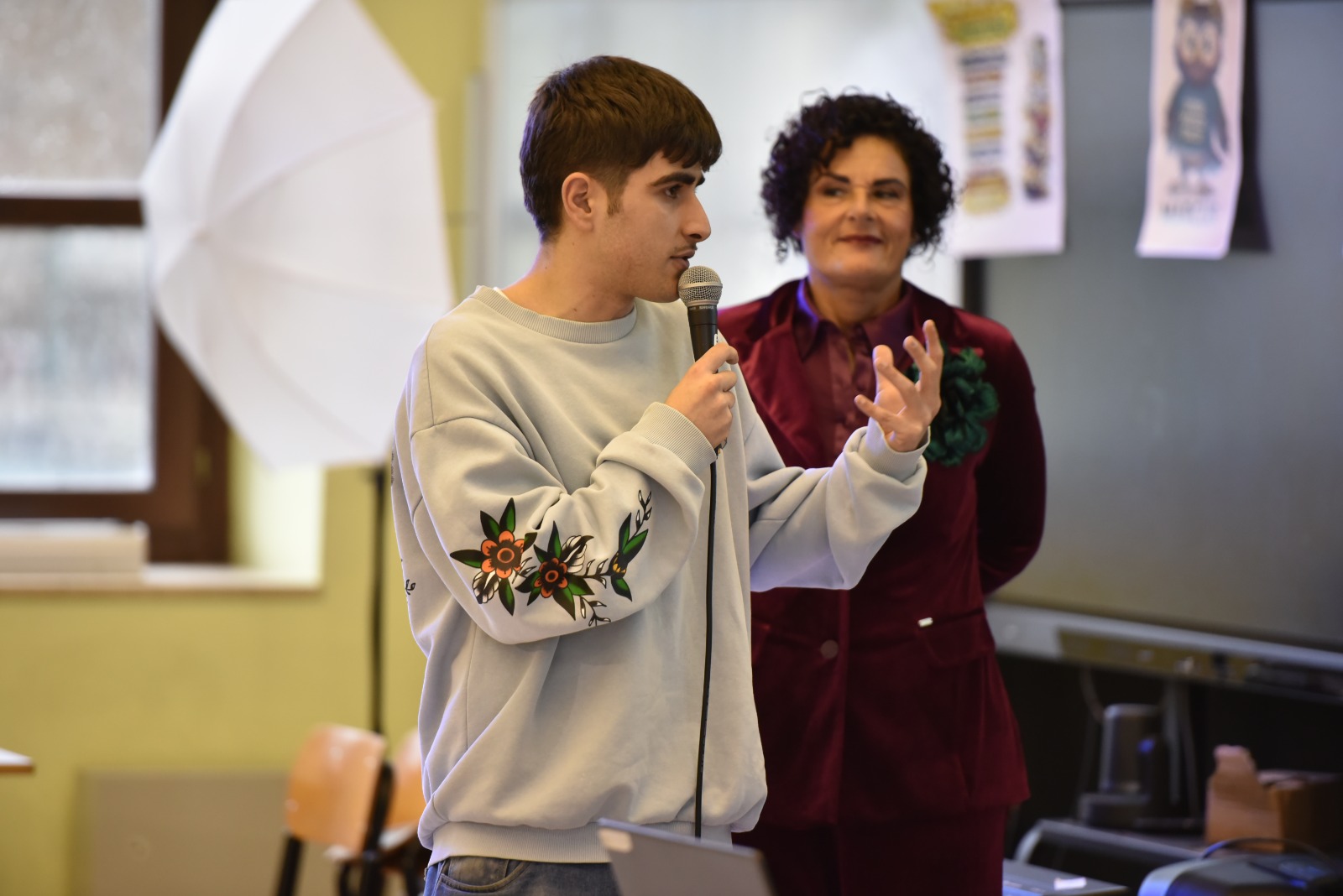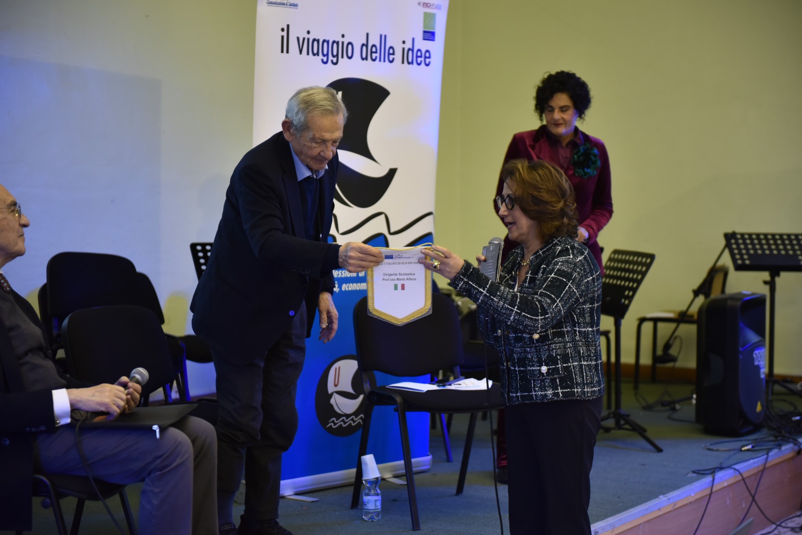 Ad aprire e chiudere l’evento è stata la prof.ssa Maria Alfano, dirigente scolastica dell’IIS “De Filippis – Galdi”, che ha poi omaggiato il prof. Antonio De Simone del guidoncino dell’Istituto da lei diretto.