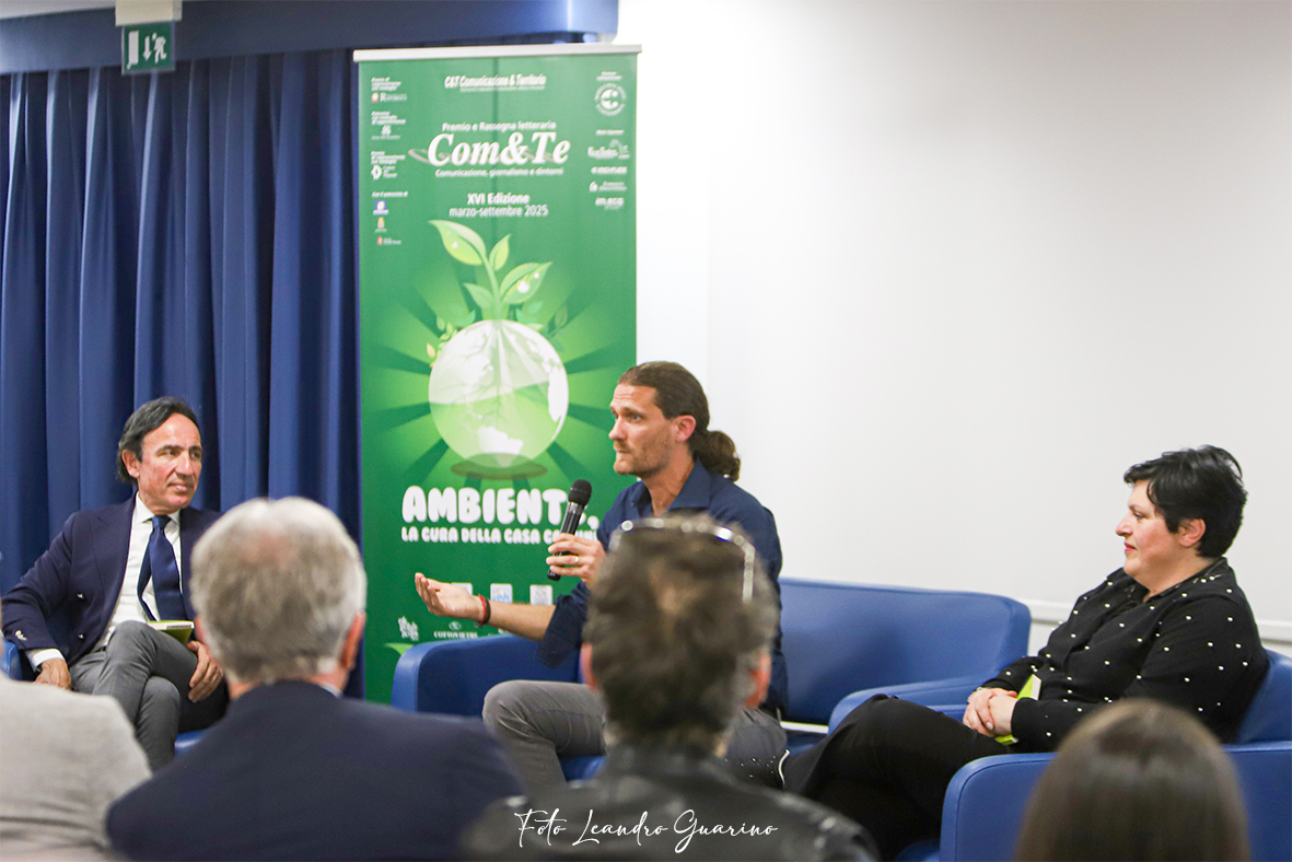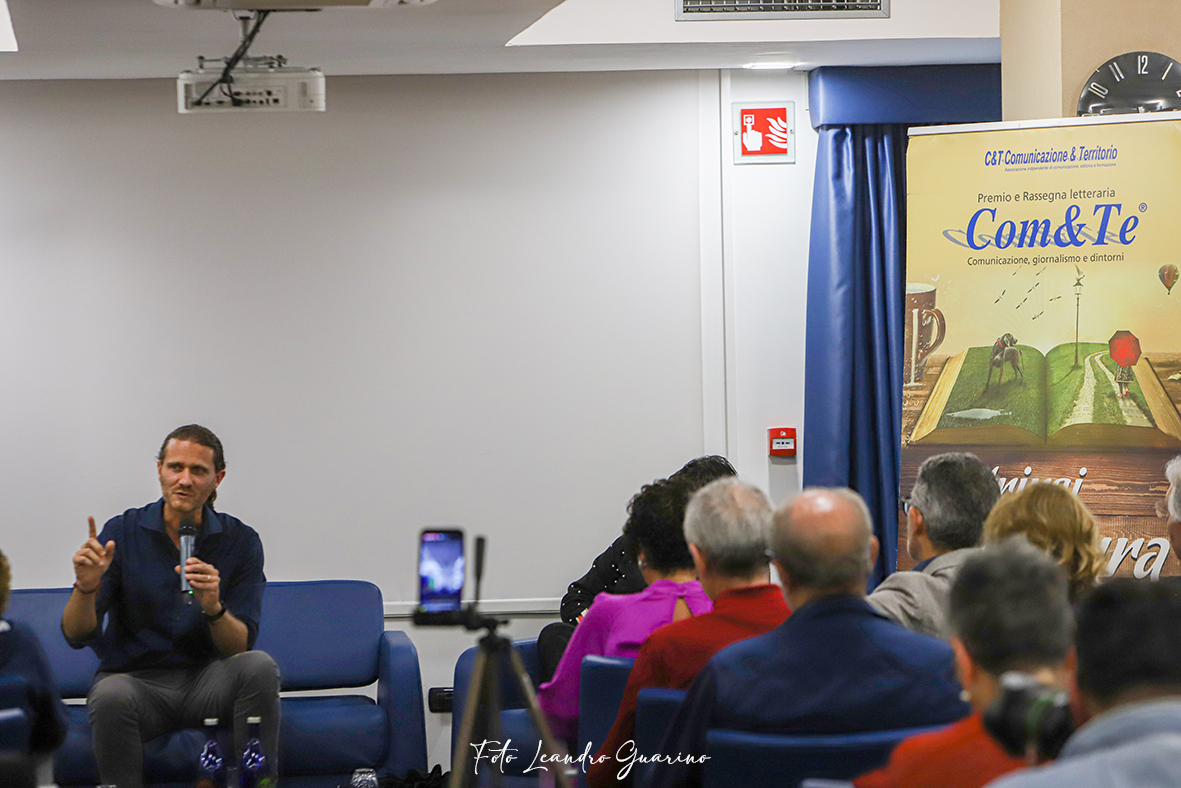 A stimolare l’autore la giornalista Mariella Sportiello, segretaria dell’Associazione Comunicazione & Territorio organizzatrice del Premio Com&Te, e il dottor Antonello Barretta, direttore generale del Ciclo integrato delle acque e dei rifiuti della Regione Campania e presidente della Giuria del Premio Com&Te di giornalismo.