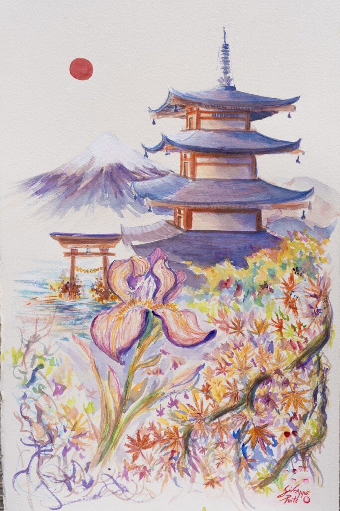 Alla ricerca dell’armonia interiore a novembre del 2023 Giuseppe Proto ha fatto un viaggio in Giappone, e ci dice: “Sono stato in Giappone e ciò che doveva essere un viaggio di fotografia, una vacanza di viaggio anche a livello artistico per trovare delle ispirazioni si è trasformato in qualcosa di diverso”, e continua: “ quasi un viaggio spirituale che mi ha fatto riflettere sulla mia vita e conoscere, accogliere e imparare la filosofia orientale. Ho visitato il monte Fuji con i cinque laghi e dintorni, Kyoto antica capitale nipponica, Osaka famosa per la buona cultura del cibo e Arashiyama dove si ferma il tempo per le foreste di bambù e i templi buddisti,” ed infine Tōkyō (una metropoli di 14 milioni di abitanti) e continua: il Giappone mi affascina e conto di ritornarci per osservare le foglie che cadono in autunno (Momijigari). Le suggestioni che l’artista ha vissuto nel suo viaggio hanno lasciato una forte impronta nelle opere esposte dove, tra fotografie e acquerelli si è immersi in un’esplosione di colori che ricordano le atmosfere visive dell’opera Madama Butterfly di Giacomo Puccini.