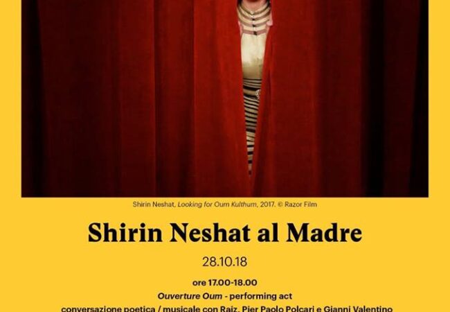 Domenica 28 ottobre un grande evento al Museo Madre di Napoli che ospiterà l’artista iraniana Shirin Neshat in occasione della proiezione del suo ultimo film “Looking for Our Kulthum”. L’incontro con l’artista con la successiva proiezione della pellicola si terrà dalle ore 18 alle 19,30.