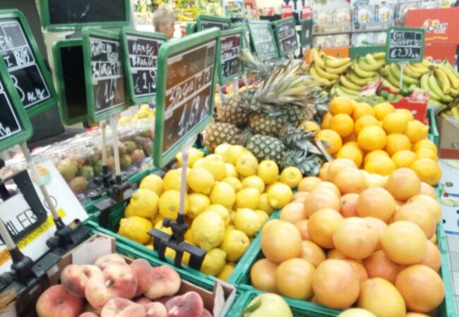 A far tornare positiva l’inflazione contribuiscono i prezzi dei prodotti alimentari che aumentano dello 0,6% con punte del 3% per la frutta.