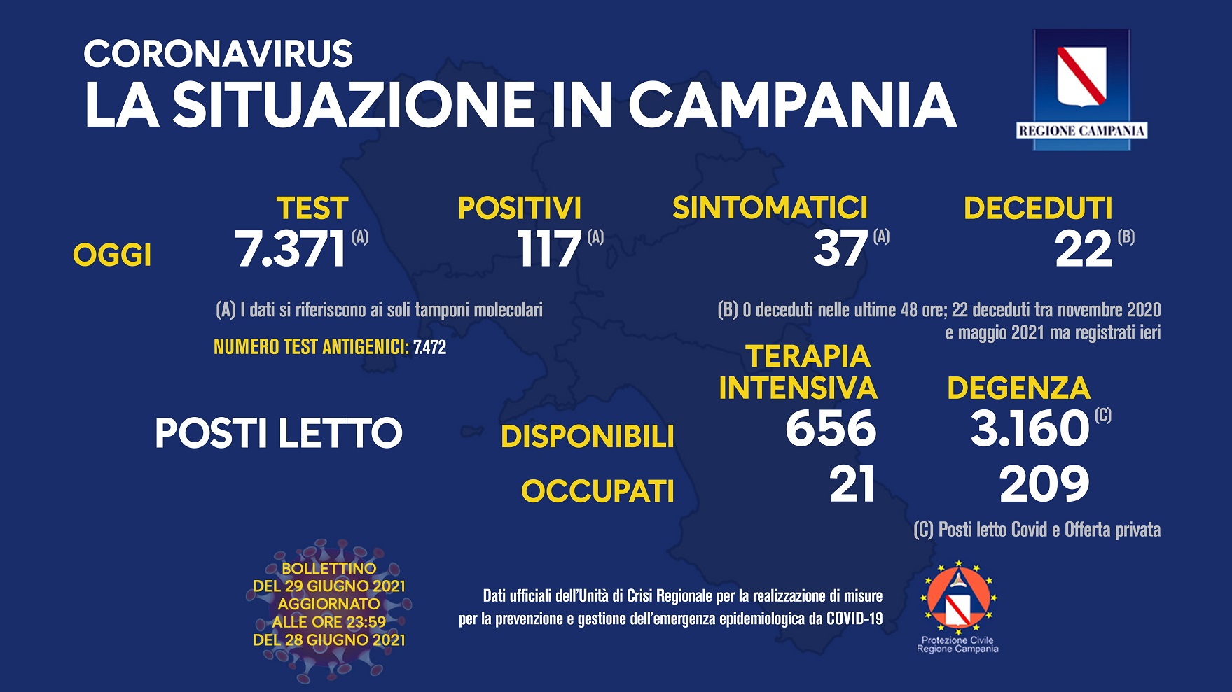 Questi i dati relativi alla regione Campania: