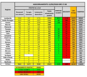 Nell’ambito del monitoraggio sanitario relativo alla diffusione del nuovo Coronavirus sul territorio nazionale i casi totali sono 24.747, al momento sono 20.603 le persone che risultano positive al virus.