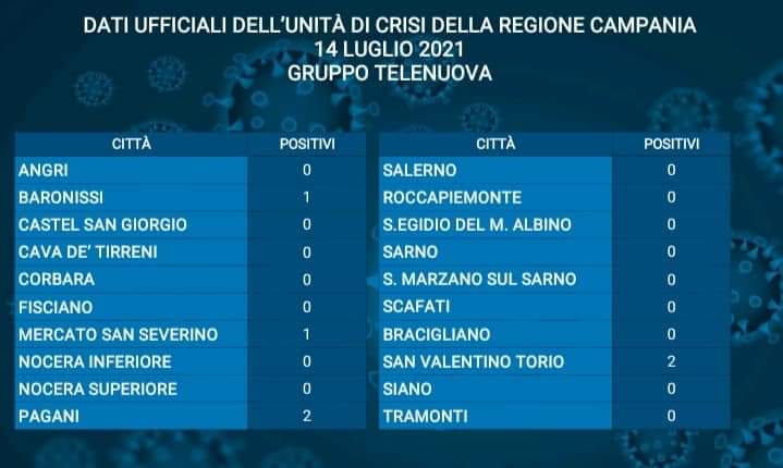 A Cava de’ Tirreni nella giornata di ieri non si registrano nuovi casi di contagio così come si rileva dal report ufficiale comunicato dall’Unità di crisi della Regione Campania, pubblicato in un post sulla propria pagina Facebook dalla emittente televisiva Telenuova di Pagani.