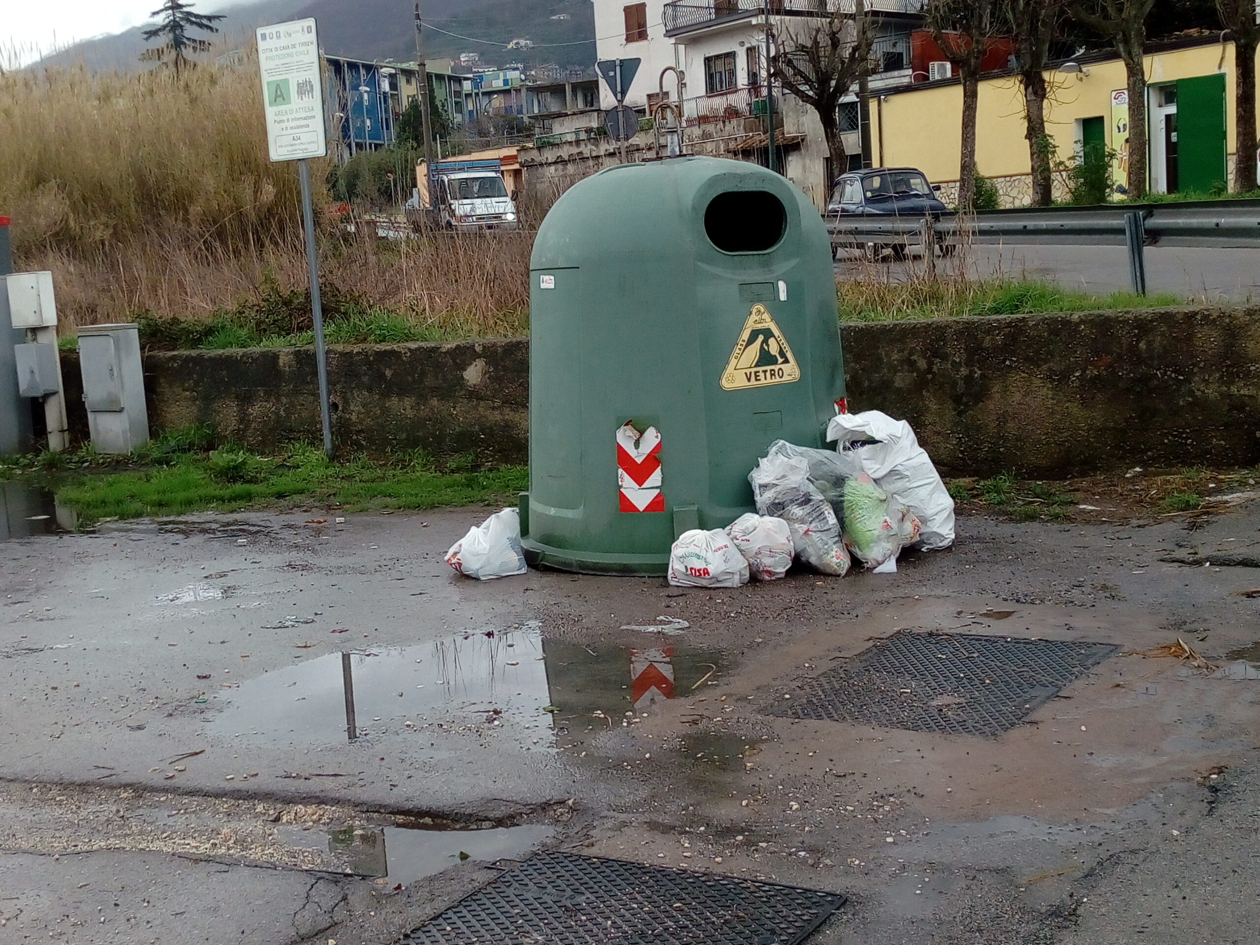 La cosa paradossale è che in quell’area, che dovrebbe ospitare, in caso di calamità, i cittadini che potrebbero avere la necessità di scappare dalle proprie abitazioni per mettersi in salvo da terremoti, incendi, alluvioni ecc., vi sono due cartelli: uno della Protezione Civile che indica l’aria come zona di primo concentramento, l’altro che indica che lo spazio è videosorvegliato proprio per evitare che si lascino rifiuti.