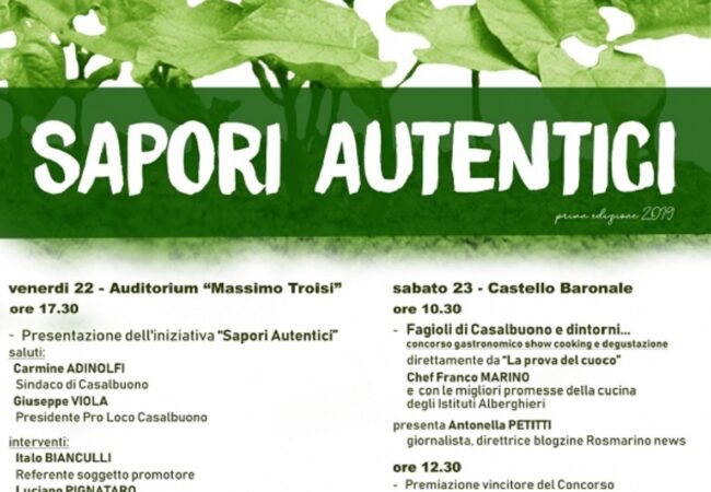 “Sapori Autentici”, organizzato e promosso dalla Pro Loco e dal Comune di Casalbuono, nasce dalla volontà di un gruppo di amici innamorati del proprio territorio, intenzionati a creare una rete di distribuzione e commercializzazione che sostenga i produttori, di conseguenza l’economia agricola locale.