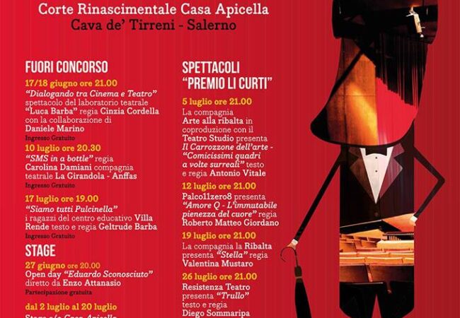 Partirà il prossimo giovedì 5 luglio e si protrarrà fino al 26 luglio la rassegna teatrale ideata da Geltrude Barba, che si svolgerà nella corte dello storico palazzo rinascimentale di Casa Apicella, a San Lorenzo.