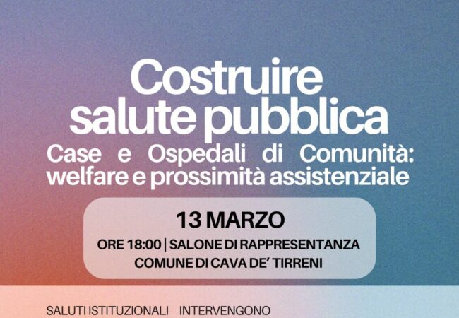 La città di Cava de’ Tirreni ospita un nuovo momento di riflessione sul futuro della sanità territoriale con l’incontro “Costruire salute pubblica – Case e Ospedali di Comunità: welfare e prossimità assistenziale”. L’appuntamento, in programma il 13 marzo nel Salone di Rappresentanza del Comune, riunisce amministratori, professionisti del settore socio-sanitario e rappresentanti del terzo settore per discutere il ruolo delle strutture di comunità nella riorganizzazione dei servizi.