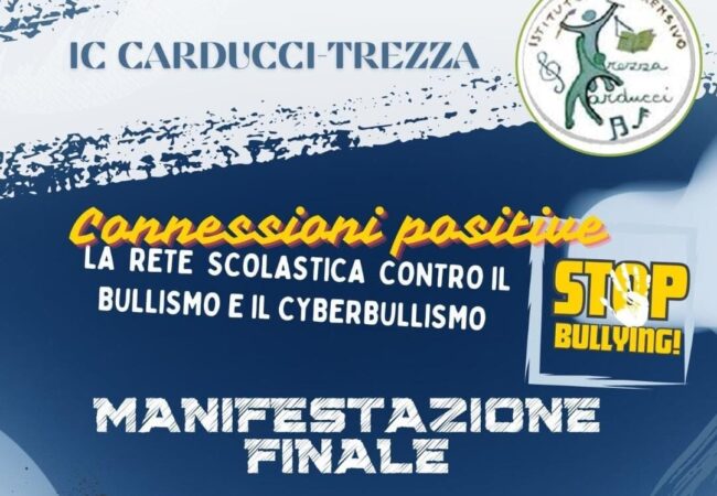 Lunedì mattina alle ore 10.00 presso il Teatro Siani si terrà la manifestazione finale del progetto “Connessioni positive: la rete scolastica contro il bullismo e il cyberbullismo”: il progetto, promosso e finanziato dall’Ufficio Scolastico Regionale per la Campania, ha visto l’IC Carducci- Trezza come scuola capofila ed è stato realizzato insieme ad altre due scuole del territorio, il liceo De Filippis- Galdi e l’IC San Nicola. Il progetto ha previsto percorsi formativi rivolti a docenti, studenti e genitori: infatti la prevenzione e il contrasto al bullismo funzionano davvero solo se diventano una responsabilità educativa condivisa.