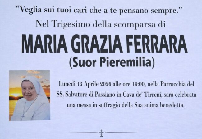 Un ricordo inteso, oltre il tempo. A trenta giorni dalla scomparsa di Maria Grazia Ferrara, conosciuta come Suor Pieremilia, la comunità si raccoglie ancora una volta nel segno della memoria e della gratitudine.
