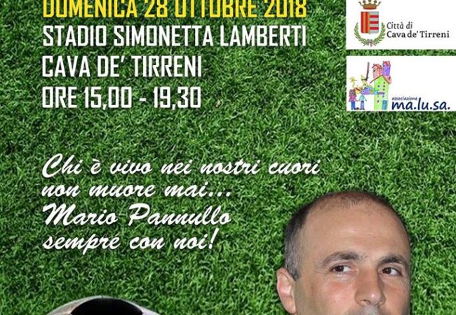 Domenica 28 ottobre, a partire dalle ore 15, presso lo Stadio Comunale Simonetta Lamberti, si svolgerà il 2° Memorial dedicato a Mario Pannullo, organizzato dall’associazione Ma. Lu. Sa, in collaborazione con l’Amministrazione Comunale.