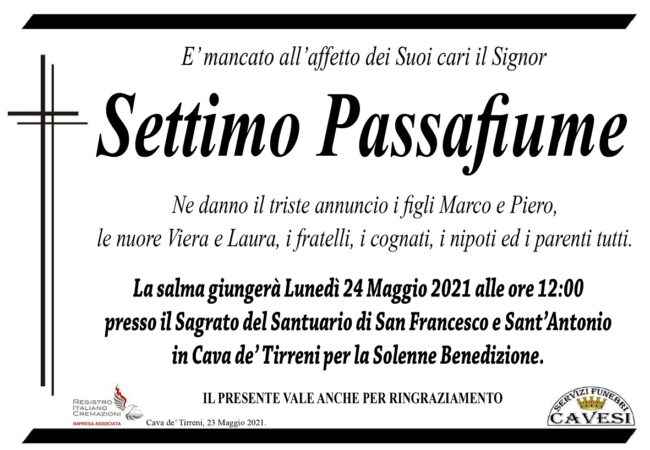 E’ mancato all’affetto dei Suoi cari il Signor Settimo Passafiume.