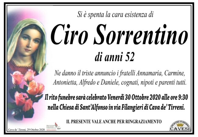 Si è spenta la cara esistenza di Ciro Sorrentino, di anni 52.