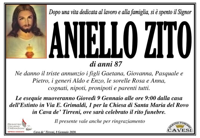 Serenamente come visse, dopo un vita interamente dedicato al lavoro e alla famiglia, si è spento all’età di 87 anni il signor Aniello Zito.