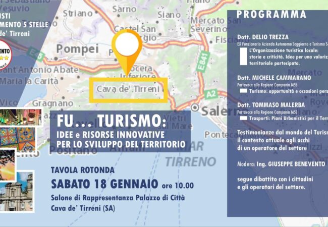 Focus sulle opportunità allo sviluppo del settore turistico e sui piani urbanistici con attenzione ai trasporti e la connettività sarà data con la partecipazione dei portavoce M5S al Consiglio Regionale Campania Michele Cammarano e Tommaso Malerba.