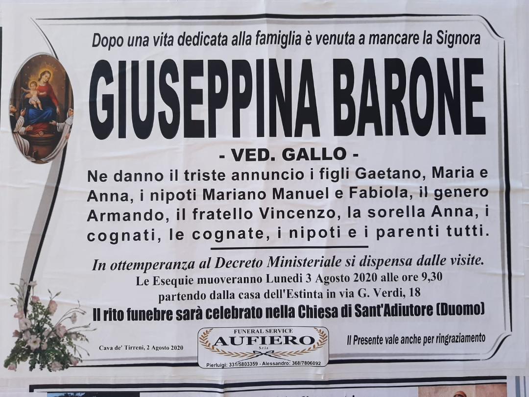 Cava piange la scomparsa di Giuseppina Barone, vedova Gallo, deceduta sabato 1° agosto dopo un’intera vita dedicata alla cura dei familiari.