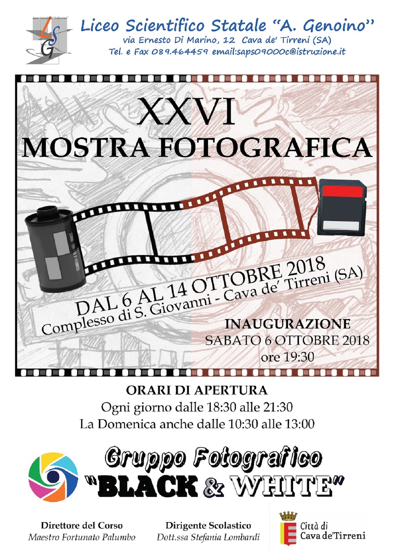 La Mostra, organizzata dal Gruppo fotografico “Black & White” del Liceo Scientifico “Genoino” di Cava de’ Tirreni, può essere visitata ogni giorno dalle 18,30 alle 21,30, e la domenica anche dalle 10,30 alle 13,00, sarà aperta fino alla prossima domenica 14 ottobre.