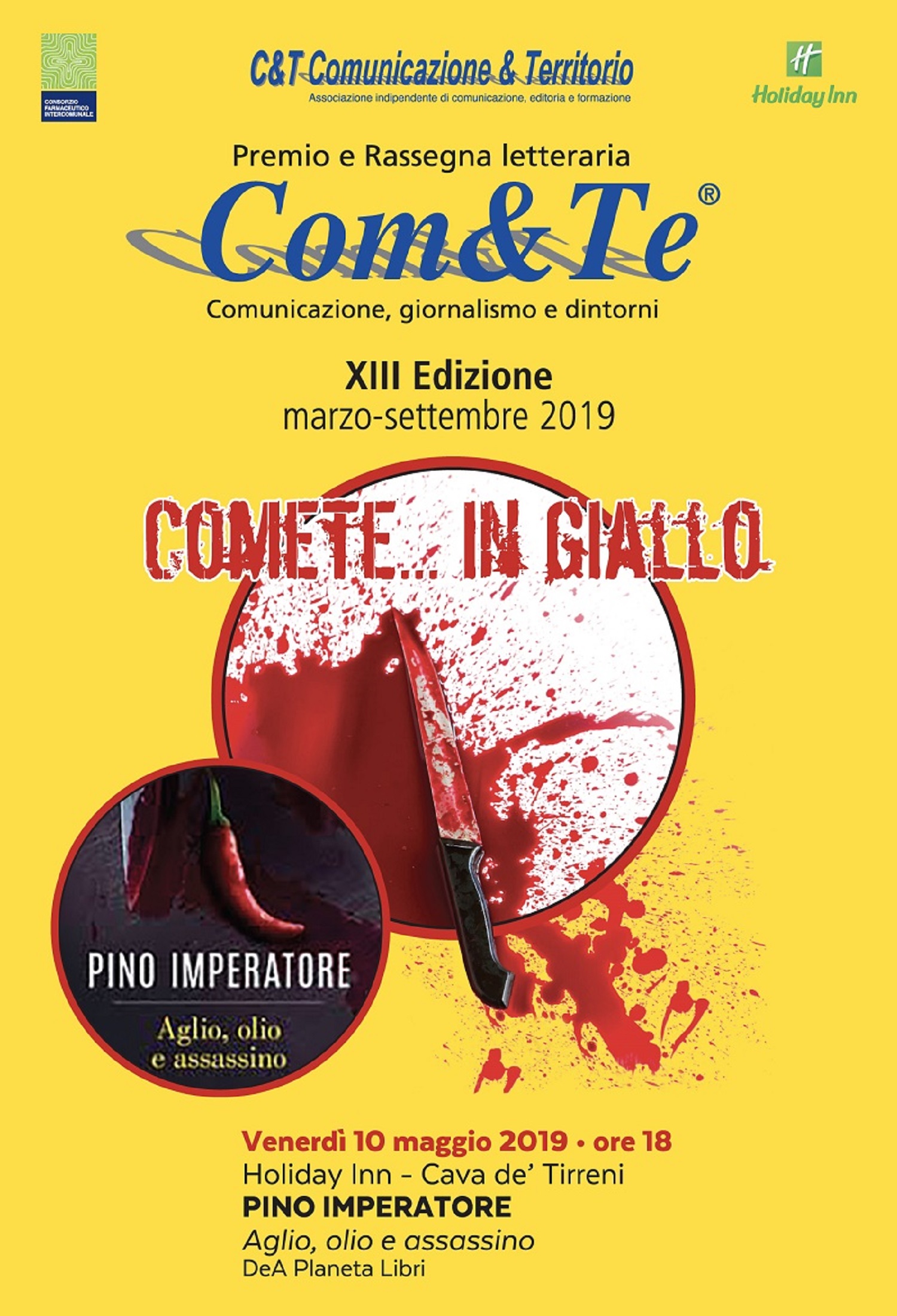 Questa sera alle ore 18.00, all’Holiday Inn di Cava de’Tirreni, secondo salotto letterario della XIII edizione del Premio Com&Te Comunicazione, giornalismo e dintorni, dedicata quest’anno al giallo, thriller e noir, con Pino Imperatore, autore del thriller Aglio, olio e assassino (DeA Planeta Libri).