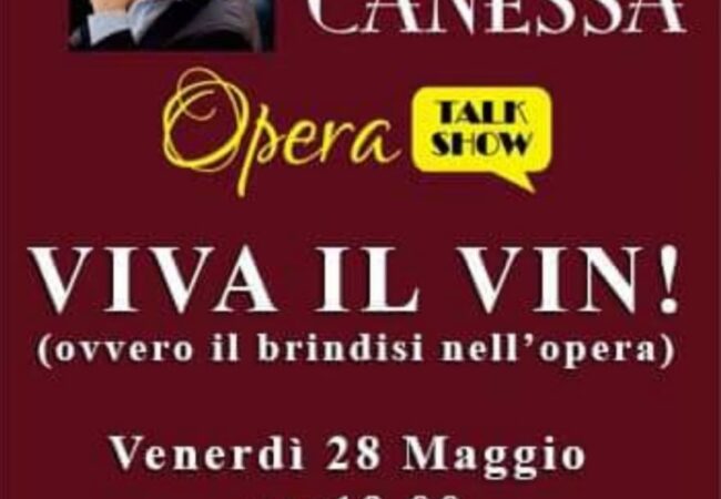 Questa sera a Napoli, al Teatro Diana, appuntamento alle ore 19 con il Maestro Riccardo Canessa nell’opera talk show “Viva il Vin!”, ovvero il brindisi nell’opera lirica.
