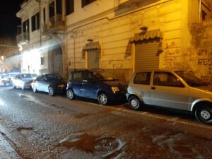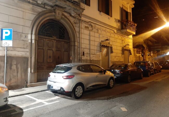 Come si può vedere dalle foto, l’intera area di sosta a due ruote di via Rosario Senatore era occupata da automobili. Nello stesso momento, secondo la personale testimonianza oculare della scrivente, in via Biblioteca Avallone un’auto modella station vagon era parcheggiata nell’area adibita alla sosta esclusiva dei ciclomotori e occupava ben sei posti. Ovviamente, senza ticket.