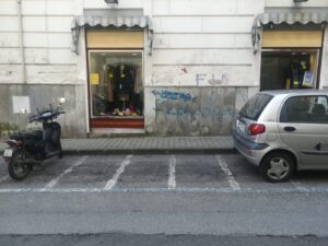 Siamo in via Rosario Senatore, zona centralissima, e come spesso accade, negli stalli per i motocicli è posteggiata un’auto. Sembrerebbe facile risolvere il busillis, l’automobilista non può posteggiare lì. Ma, andando a guardare meglio la segnaletica orizzontale, si può notare come vi sia un mélange di vernice bianca e di azzurra. Sembrerebbero stalli per veicoli a due ruote, ma quei tocchi d’azzurro potrebbero indurre anche a pensarla diversamente, come probabilmente sarà capitato al “distratto” automobilista.