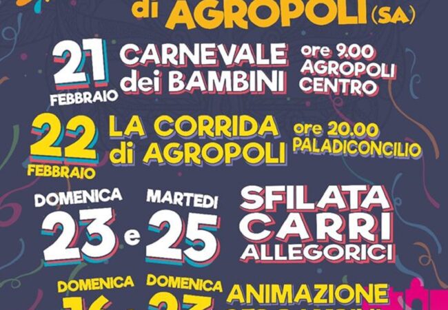 E poi ci saranno tante sorprese… Domenica la partenza è prevista da via D’Acquisto mentre il giorno di martedì grasso, dal lungomare San Marco, con arrivo in entrambi i casi, in Piazza Vittorio Veneto. Qui, nel frattempo si svolgeranno tutta una serie di eventi tra i quali concerti, spettacoli di danza, intrattenimento e il concorso di miss e mister Carnevale di Agropoli (martedì 25 febbraio). E intanto, già si pensa all’edizione numero 50.