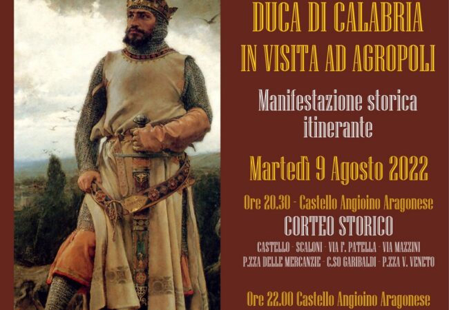 «Alfonso d’Aragona, Duca di Calabria – affermano il sindaco Roberto Mutalipassi e l’assessore Roberto Apicella – nel suo viaggio nel Cilento, dopo la sosta ad Eboli, si fermò, tra il 5 e il 6 ottobre 1487, presso il Castello di Agropoli, per controllare l’andamento dei lavori di ristrutturazione e di adeguamento della fortezza agropolese. Martedì 9 agosto, puntiamo a rimettere in scena quei momenti nella sua sede naturale, che vide il futuro re di Napoli nella nostra città oltre cinque secoli fa, coinvolgendo anche il centro cittadino».