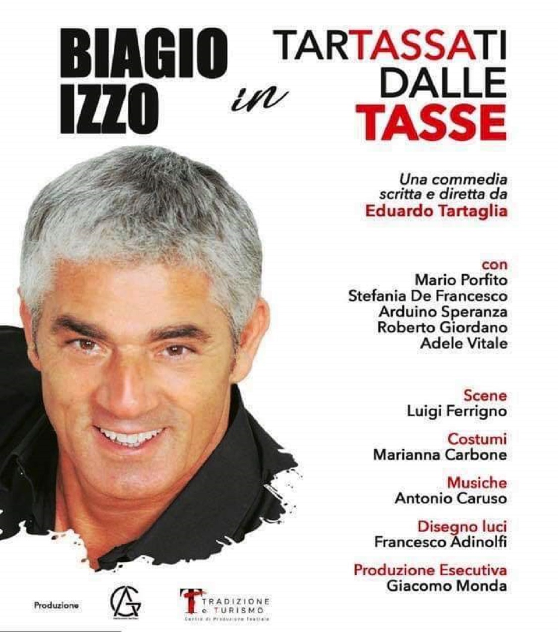 Mercoledì 4 marzo al Cineteatro “De Filippo” di Agropoli torna la comicità di Biagio Izzo, che vestirà i panni di Innocenzo, nella commedia “Tartassati dalle tasse”, scritta e diretta da Eduardo Tartaglia.