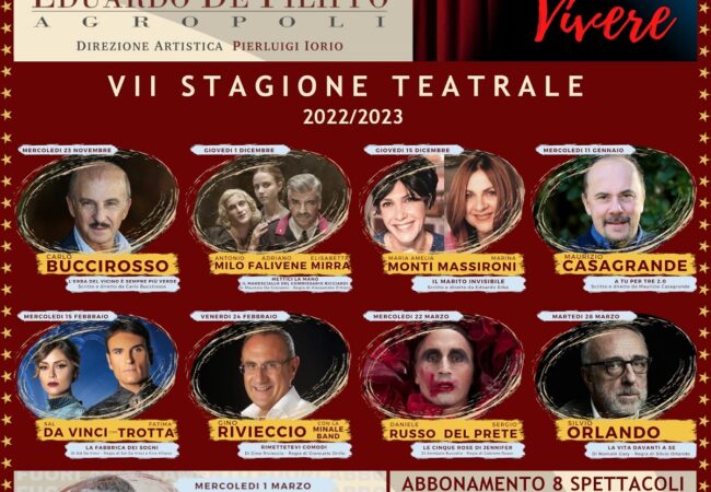 Sono otto gli spettacoli in cartellone, più un nono fuori abbonamento, oltre ad un’anteprima di stagione in omaggio a Gassman e Pasolini. Si svolgeranno a partire da novembre 2022, con la chiusura prevista il 28 marzo 2023. Nel mezzo, spettacoli di attori ed artisti del panorama nazionale, molto apprezzati ed amati. Tutti promettono di appassionare, divertire e far riflettere.