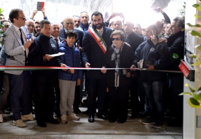 Ad inaugurare l’importante opera pubblica giunta a compimento dopo oltre trent’anni – il progetto fu approvato in un consiglio comunale del 1981 – sono stati il sindaco Daniele Milano e l’assessore ai lavori pubblici Matteo Bottone che, per il taglio del nastro all’ingresso del cunicolo pedonale, hanno voluto accanto a loro un bambino dell’istituto comprensivo ed un’anziana signora del paese che mancava dal cimitero da oltre un lustro, a causa degli acciacchi per i quali non poteva scalare i circa 400 scalini che vi portano.