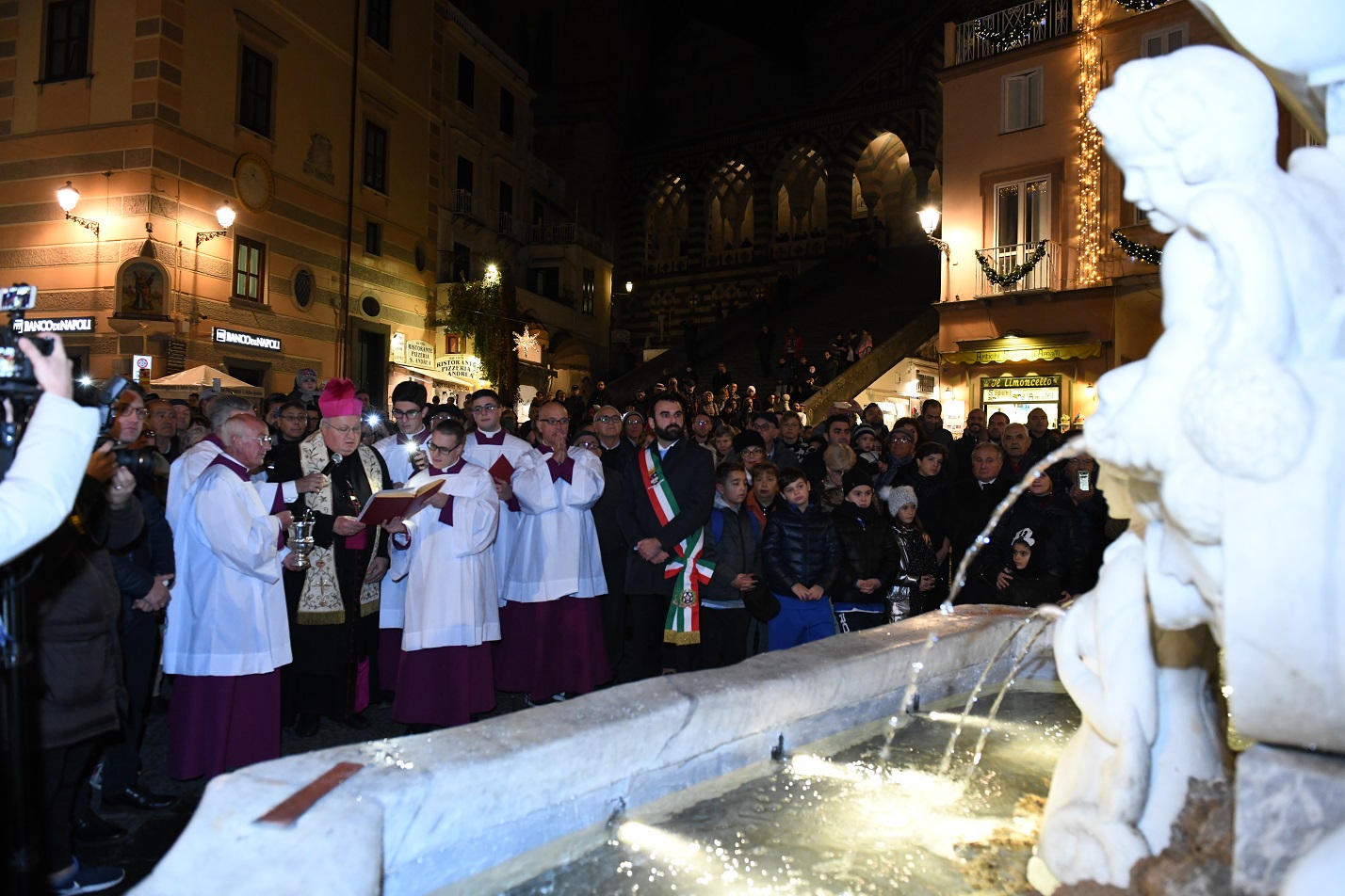 «In questo monumento rivivono tutte le tradizioni e le fedi degli amalfitani. Siamo felici di averlo restituito alla città in tutto il suo splendore grazie alla volontà della mia amministrazione comunale e in particolare all’assessore ai beni culturali, Enza Cobalto» ha detto il sindaco Daniele Milano, parlando a una piazza gremita, poco prima dell’inaugurazione della fontana impreziosita da un nuovo impianto di illuminazione.
