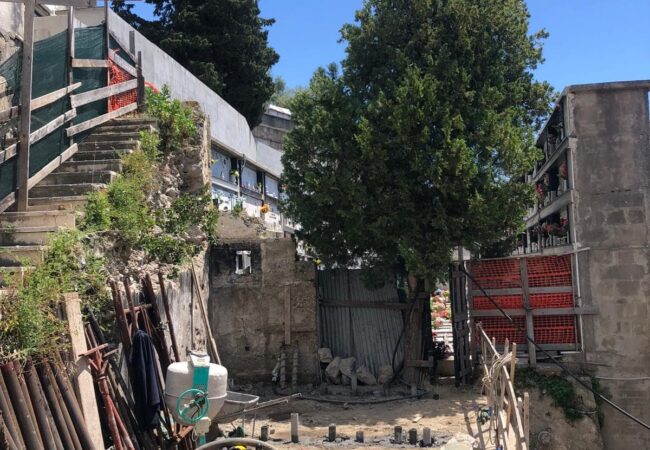 Il piano di recupero delle aree esterne, che ha seguito una una serie di altri interventi che hanno ripristinato i punti che necessitavano di cure urgenti, è volto a donare nuova dignità ad una struttura ereditata in stato di abbandono e che è stata restituita alla città e a tutta la popolazione per culto della memoria dei cari solo dopo l’inaugurazione 3 anni fa degli ascensori in roccia che vi conducono, che l’hanno reso raggiungibile senza dover scalare 350 gradini.