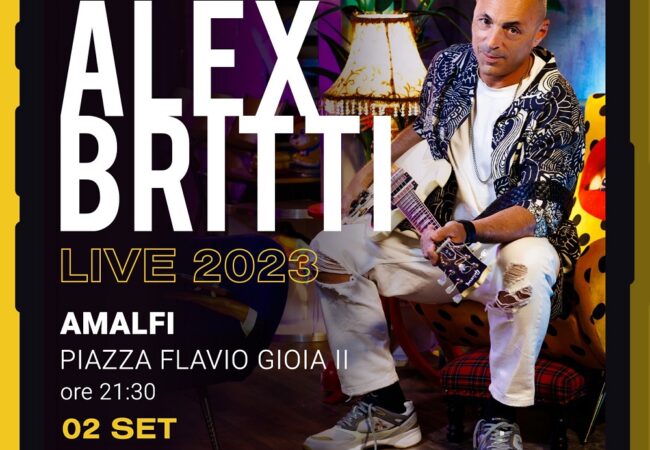SABATO 2 SETTEMBRE. Novità 2023 è il gran finale con il concerto del chitarrista e cantautore Alex Britti in una location straordinaria, in Piazza Flavio Gioia II, direttamente sul mare di Amalfi, in programma alle ore 21:30 ad Ingresso Libero.