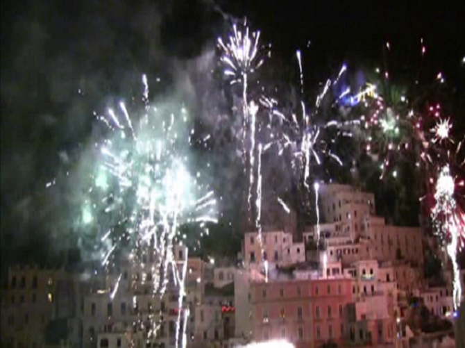 La calata della stella, sarà poi “festeggiata” da un suggestivo spettacolo pirotecnico che illuminerà tutto il borgo. E’ un tripudio di colori con fantasmagorici arabeschi aerei che si staglieranno nella memorabile notte atranese. (foto Alfonso Vuolo)