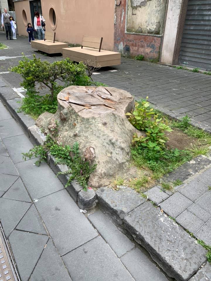 Il secondo di Giovanni Di Paola: “Qualcuno sa dirmi cosa sta succedendo al filare di alberi presso il campo sportivo che vedo con le radici tagliate per rifacimento marciapiedi?”