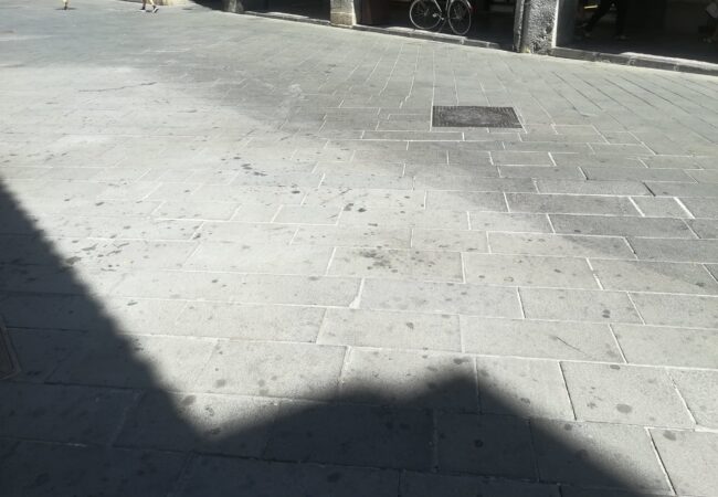 “Alcuni esercizi pubblici – ha dichiarato Passa – stanno rovinando la pavimentazione del centro storico. Davanti a quell’esercizio commerciale ci sono circa 40 metri quadri di colore diverso dall’originale perché evidentemente sarà stato utilizzato un acido che ha scolorito la pavimentazione. E’ sotto gli occhi di tutti. Perché non vengono presi provvedimenti?”.