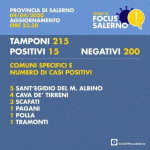 Intanto aumenta il numero dei positivi in città. Ieri sera sul tardi sono giunti gli aggiornamenti: 4 nuovi contagi da covid-19, di cui 3 sono familiari di un positivo. Tra venerdì e sabato sono stati effettuati quasi 50 tamponi a Cava, anche se non è ancora disponibile il dato circa il numero complessivo dei tamponi effettuati nella nostra città.