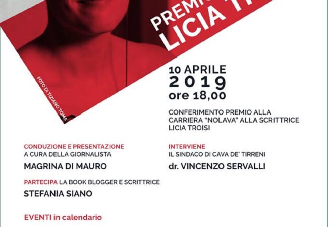 Infine, mercoledì 10 aprile ore 18.00 alla scrittrice e regina del fantasy italiano Licia Troisi sarà consegnato il premio alla carriera NOLAVA, opera ideata e realizzata dal maestro Biagio Landi. Licia Troisi sarà presentata dalla giornalista Magrina Di Mauro e dalla book blogger e scrittrice Stefania Siano, una chiacchierata a 360 gradi sul mondo dell’editoria e del genere fantasy.