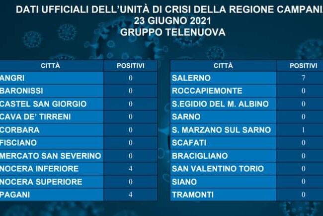 E’ quanto si rileva dal report ufficiale comunicato dall’Unità di crisi della Regione Campania, pubblicato in un post sulla propria pagina Facebook dalla emittente televisiva Telenuova di Pagani.