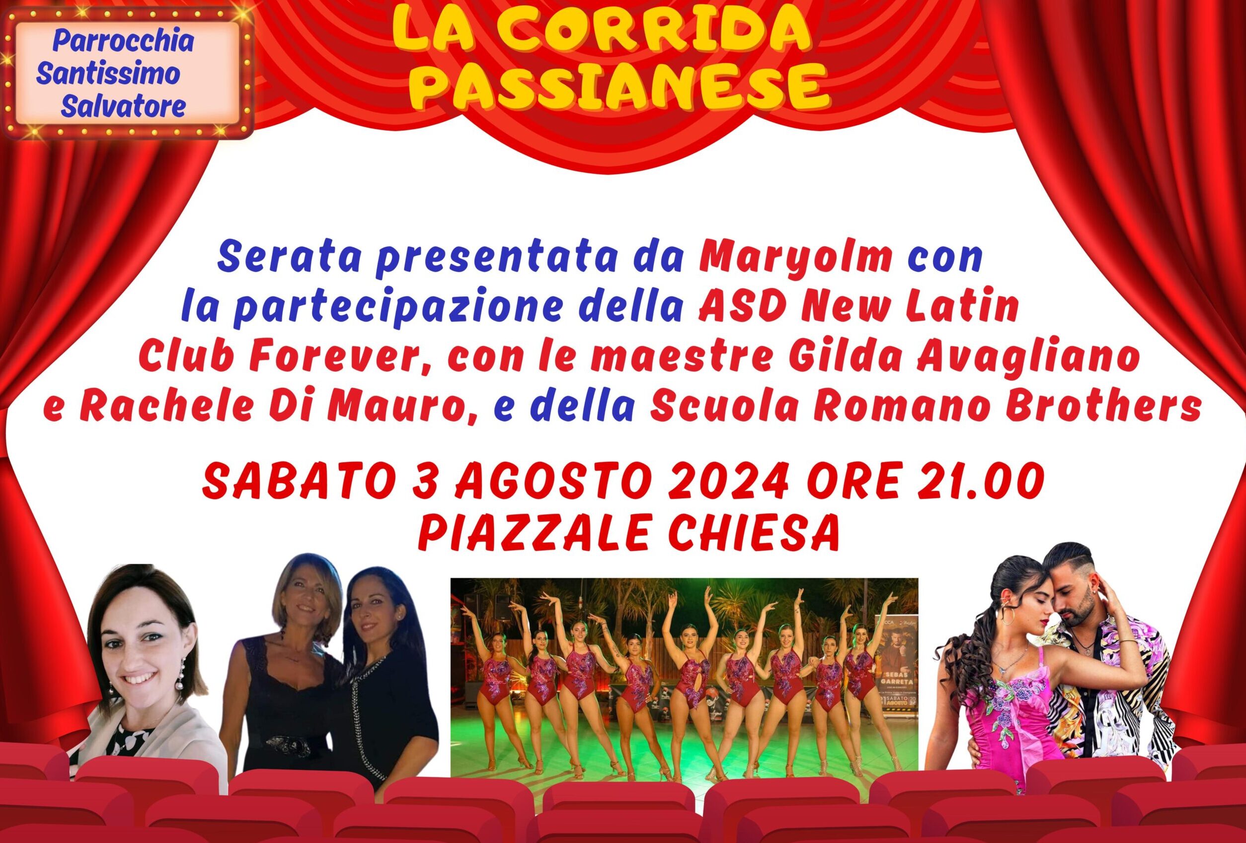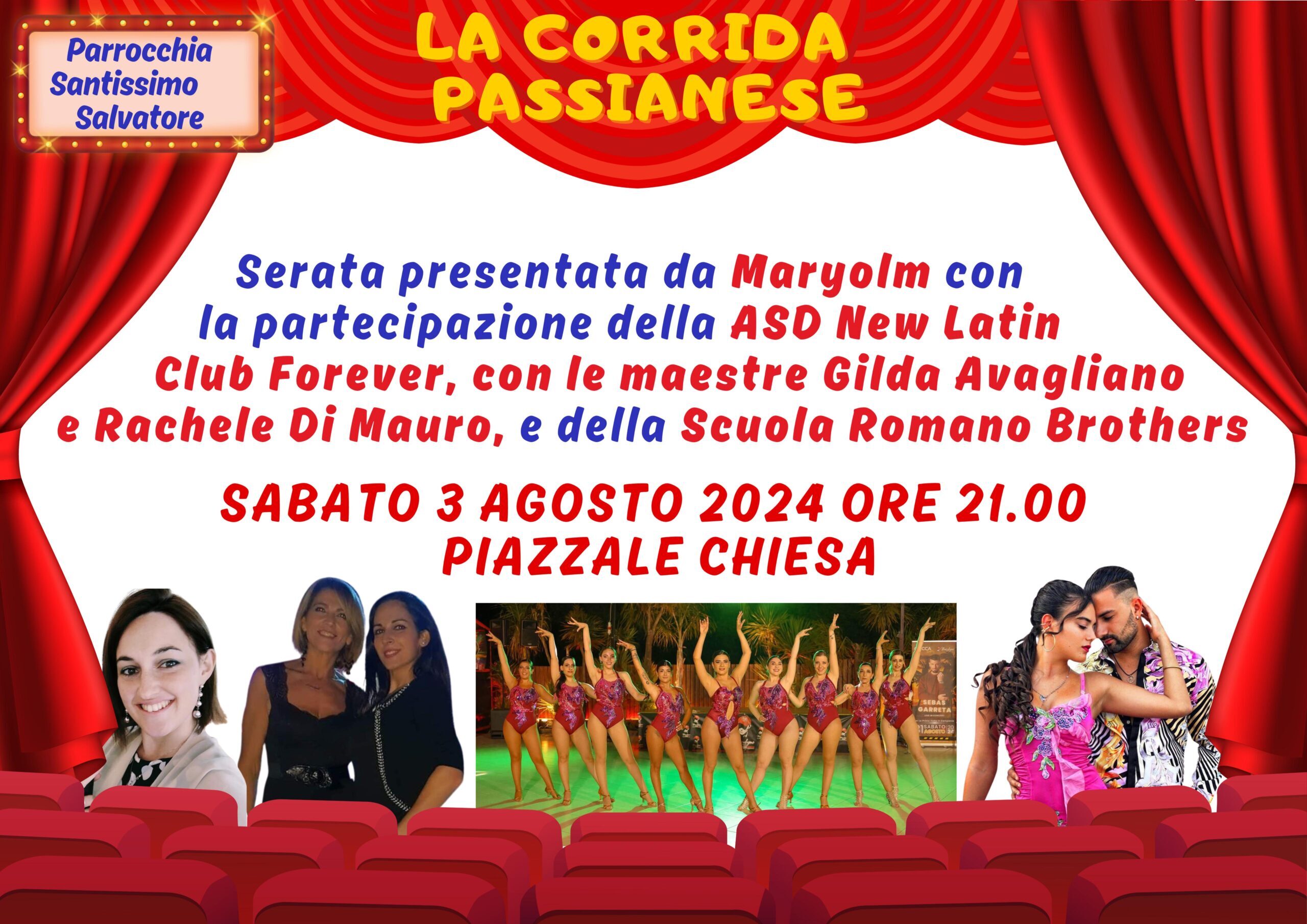 Il programma religioso si alterna al programma civile. L’inizio è previsto per la serata del 3 agosto: sono in programma “La Corrida Passianese”, presentata da Maryolm, e lo spettacolo di danza offerto dalla ASD New Latin Club Forever e dalla Scuola Romano Brothers.