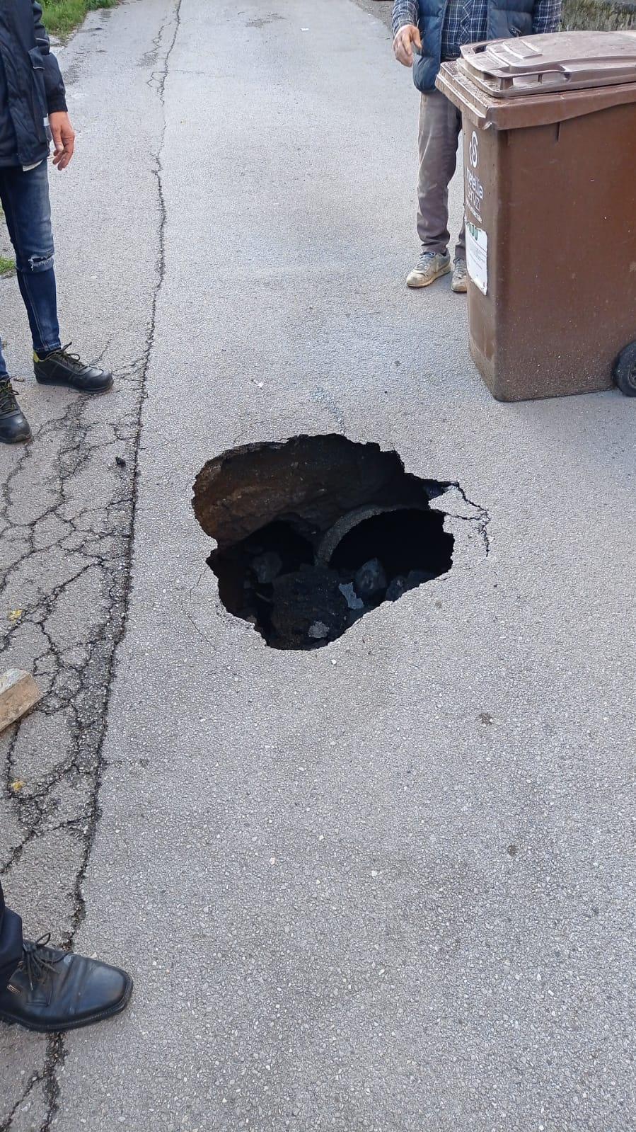 Cava de’ Tirreni, a Santa Lucia cede una fognatura: si apre una buca in strada