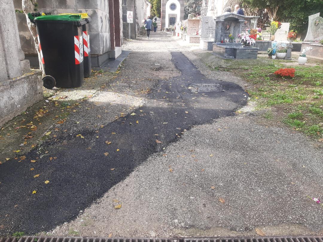 Sono tanti, del resto, i lavori di manutenzione da eseguire dopo anni di abbandono, ma con adeguato anticipo rispetto ai periodi di maggior afflusso di persone come le ricorrenze di Ognissanti e della Commemorazione dei Defunti. E’ necessario un piano programmato dal Comune. Innanzitutto, ci vorrebbe una copertura dell’asfalto realizzata diversamente. Quando pioverà, infatti, il rattoppo andrà via e tutto tornerà come prima.