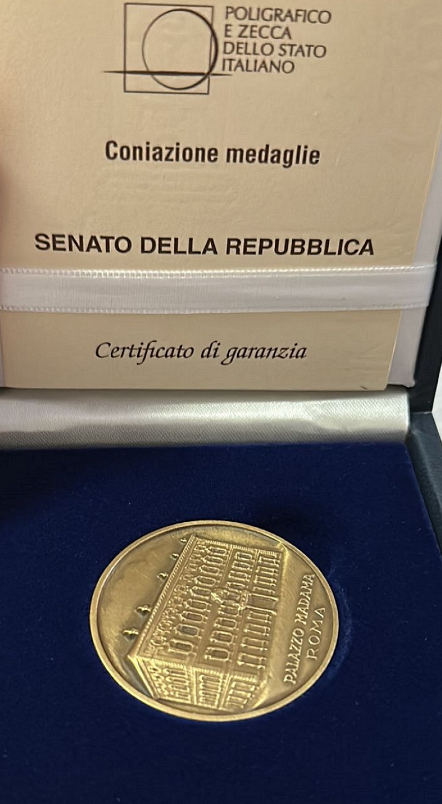 La Medaglia di rappresentanza del Senato della Repubblica sarà consegnata nel corso della cerimonia di premiazione, prevista per il prossimo 22 settembre, dal senatore Antonio Iannone, Segretario anziano dell’Ufficio di Presidenza del Senato.