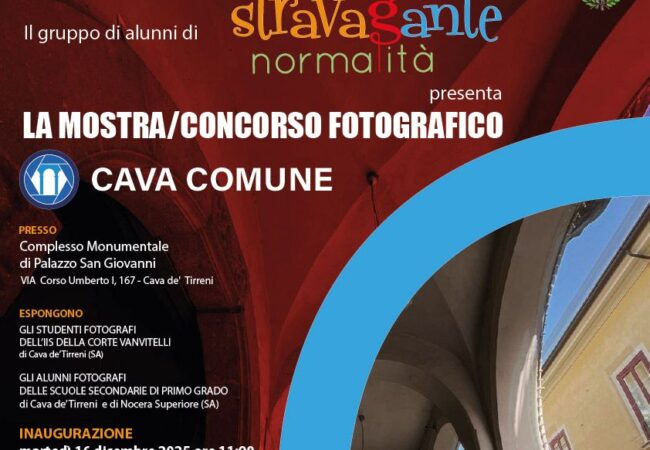 La città di Cava de’ Tirreni si prepara ad accogliere un appuntamento che intreccia arte, formazione e identità collettiva. Martedì 16 dicembre 2025, alle ore 11, presso il Complesso Monumentale di Palazzo San Giovanni, sarà inaugurata la mostra-concorso fotografica “Cava Comune”, ideata e organizzata dal Gruppo Alunni dell’indirizzo grafica e comunicazione “Stravagante Normalità” dell’IIS Della Corte-Vanvitelli.